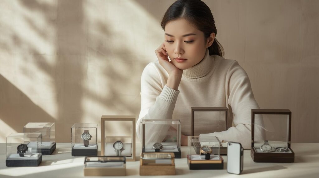 結論として、レディース腕時計ケースはデザイン・用途・収納本数といった要素をしっかり見極めて選ぶことで、満足度が大きく変わります。自分の使い方やこだわりに合ったケースを選ぶことで、お気に入りの時計を美しく守れるだけでなく、“時計を使う時間そのもの”をより心地よく豊かなものへと変えてくれます。日常のファッションや生活習慣との相性も考えながら、自分のライフスタイルにしっくり馴染むケースを選ぶことが、長く愛用できるベストな選択につながるのです。